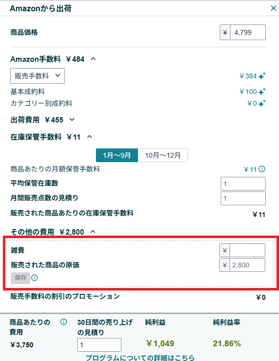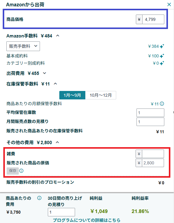 FBAでも、仕入れに別途送料がかかる場合は原価に含めます。