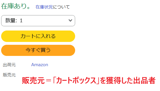 つまり「カートボックス」とは、Amazonの商品ページで表示される、